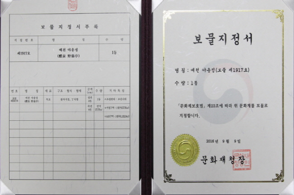 예천군, 국가지정문화재 야옹정 보물 지정서 전달