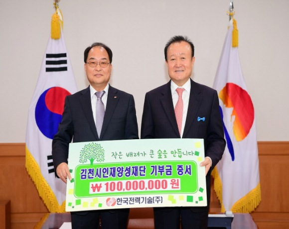 김천의 교육발전과 글로벌 인재육성을 위해 혁신도시 이전공공기관인 한국전력기술(주)(사장 박구원)에서 김천시인재양성재단(이사장 박보생)에 장학기금 1억원을 기탁했다.