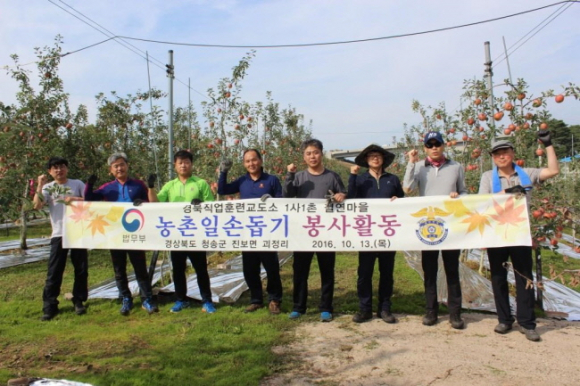경북직업훈련교도소(소장 김동환)는 13일 1사1촌 자매결연 마을인 청송군 진보면 괴정리를 방문하여 농촌일손돕기 봉사활동을 가졌다.