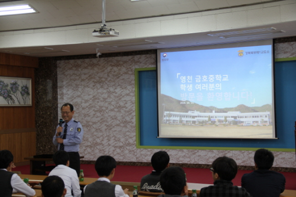 경북북부제1교도소(소장 정병헌)는 10월 14일(금) 영천 금호중학교 1학년 학생 29명을 대상으로 정부 3.0사업의 일환인 ‘중학생 자유학기제 직업체험’을 지원하기 위해 참관행사를 실시했다.