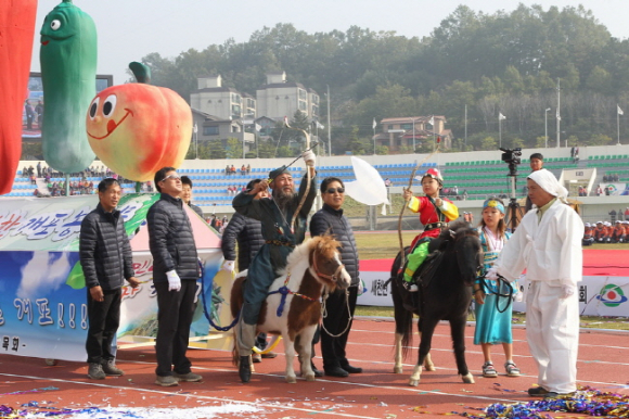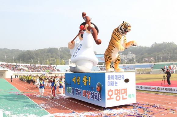 이날 군민체전의 대미를 장식 한 선수단 입장식에서는 읍면을 상징하는 농·특산물을 이용해 특색 있고 독특한 퍼포먼스를 선보였으며 관람객들은 각 읍면을 대표하는 선수단이 입장할 때마다 색다른 볼거리에 뜨거운 박수갈채를 보냈다.