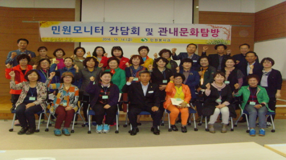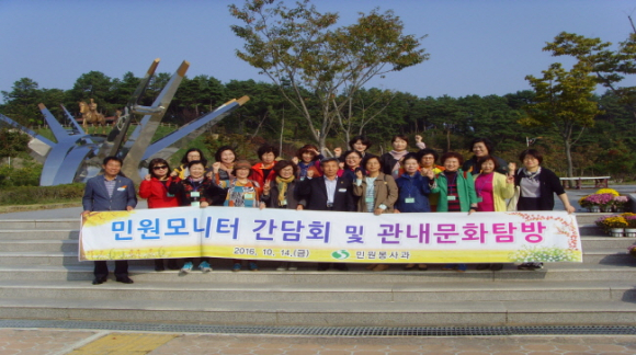 이날 자전거 박물관 세미나실에서 실시된 간담회는 민원모니터요원 50명과 관계공무원 등이 참석한 가운데, 2016년도 운영현황 및 민원모니터 활동상황 등에 대한 토론과 함께 불합리한 제도, 시책, 생활주변 불편사항 개선 등에 관한 대화의 시간을 가지면서, 시정발전을 모색 해 보는 자리가 되었다.