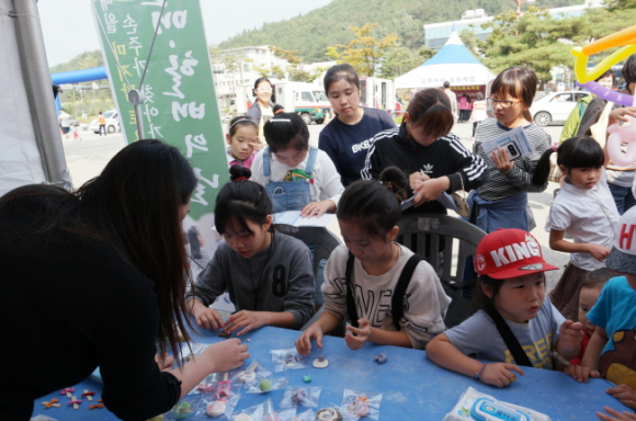 영덕군청소년상담복지센터 부스에서는 손비누만들기 체험, 매월마지막주 토요일은 할매할배의 날 스티커를 붙인 노트 배부로 자원봉사자와 지역군민들을 대상으로 큰 호응을 얻었다.