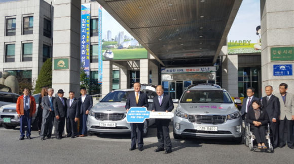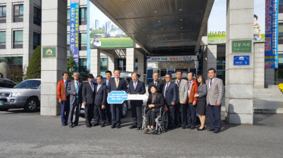 김천시는 2016.10.17.(월), 10:00 시청 전정에서 교통약자 이동지원사업의 일환으로 특별교통수단(일명 행복콜) 차량 전달식을 가졌다.