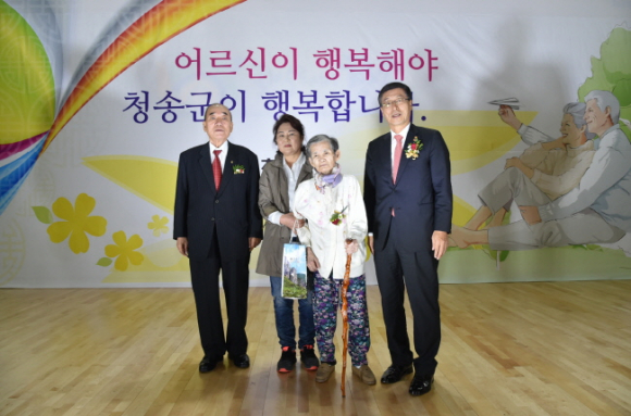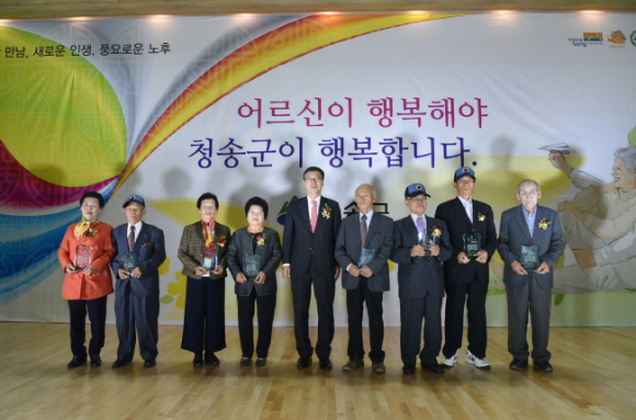 이날 행사에는 기념식과 축하공연, 노래자랑 등 다채로운 행사로 진행하였으며,모범노인, 노인복지기여자 등 노인복지향상에 기여한 공로로 군수 표창 8명,군의장 표창 4명, 군지회장 표창 8명 등 총 20명에게 표창을 수여하였다.그리고 올해 만100세가(1916년생) 되는 청송읍 김득용(여) 어르신에게는대통령 명의로 명아주로 만든 청려장(장수지팡이)을 전수하였다.