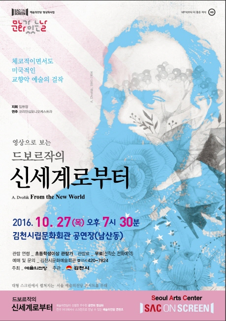 김천시문화예술회관(관장 장귀희)에서는 ‘공연영상화 사업(SAC on Screen)의 일환으로 서울 예술의전당에서 공연한 『드보르작의 신세계로부터』영상을 오는 10. 27(목) 오후 7시 30분 김천시립문화회관 공연장(남산동)에서 대형스크린을 통해 상영한다.