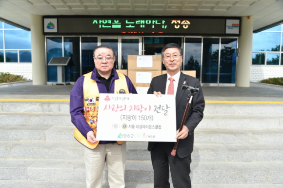 서울대성라이온스클럽이 청송지역 어르신들을 위해 사랑이 지팡이 150개(300만원 상당)를 전달했다.