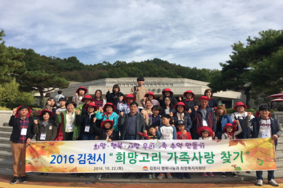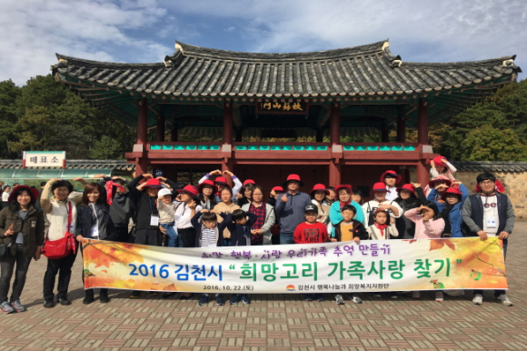 김천시 행복나눔과 희망복지지원단은 지난 10월 22일 40여명의 다문화 등의 가구가 참석한 가운데 충남 부여군 일대에서 2016년 희망고리 가족사랑찾기 행사를 실시했다.