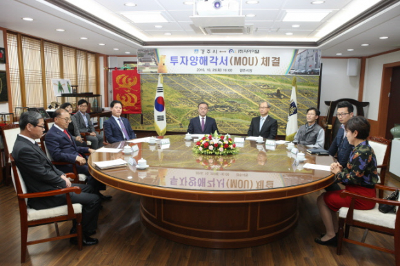 최양식 경주시장, 이선홍 대표이사, 윤병길 의회 경제도시위원장, 김은호 경주상의 회장을 비롯한 관계자 등 20여명이 참석한 가운데 이선홍 대표이사로부터 회사소개 및 투자계획 설명과 함께 투자양해각서 체결 순으로 진행됐다.