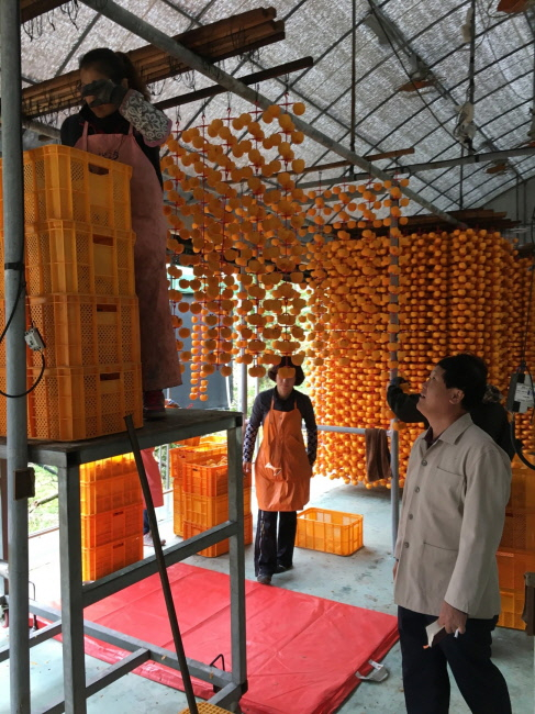곶감품질관리를 위해 농가를 방문하여 지도 및 격려