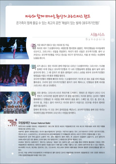 ‘해설이 있는 발레 <호두까기인형>’은 표트르 일리치 차이콥스키의 음악, 유리 그로가로비치의 안무버젼이며, 2014년 독일 슈투트가르트발레단의 수석무용수로 활약중이던 강수진 예술감독을 맞이하여 발레문화 융성에 박차를 가하고 있는 국립발레단이 직접 출연하여 수준높은 발레 공연을 선보일 계획이다.