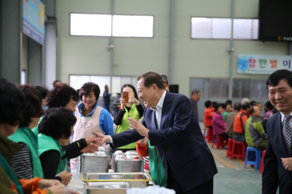 김항곤 군수는 격려사를 통해 “ 각 면의 어르신을 모시고 한 행사가 3년째가 되었으며 오늘 이 행사에 어르신들이 많이 오셔서 보기가 좋으며 100세 시대에 혼자 계시지 말고 여럿이 어울려 건강하게 사시길 바란다“고 전했다.
