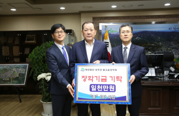 지난 10월 28일, ㈜이산(대표이원찬)에서 1천만원을 (재)성주군별고을장학회에 기탁했다.