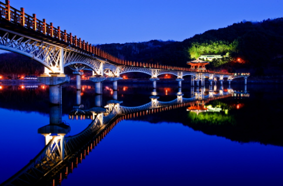 안동의 또 하나의 관광명소로 부각되고 있는 국내 최장의 목책교인 월영교에 설치되어, 관광객들의 많은 사랑을 받고 있는 월영교분수가 동절기 안전사고예방과 시설물 동파방지를 위해 가동을 일시 중단한다. 월영교 분수가동 중단기간은 11월 1일부터 내년 3월 말까지이며 분수가동이 중단되더라도 가을 단풍으로 휩싸인 월영교 통행과 일몰부터 자정까지 점등되는 화려한 조명은 관람할 수 있다. 월영교는 시원한 물줄기와 어우러지는 하부 조명과 안동민속촌 경관이 조화롭게 어우러져 절묘한 경관을 연출, 주말 및 연휴 기간 수천 명의 관광객을 유혹하며 안동의 대표적인 관광명소로 각광받고 있다. 안동시립민속박물관 관계자는 “관람객들이 동절기에 눈과 비 온 뒤 월영교 상판 위를 거닐 때에는 빙판으로 인한 낙상과 부상에 주의할 것”을 당부했다. |