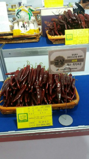 이번 품평회는 (사)경상북도친환경농업인연합회(회장 김안수)에서 주관하는 행사로 영양군에서는 고품질 친환경농업으로 재배한 고추, 참깨, 단삼 등을 출품하여 채소·특작부문에서 영양군 일월면 정찬동(46세) 회원이 유기농업으로 재배한 영양고추가 금상을 차지했다.
