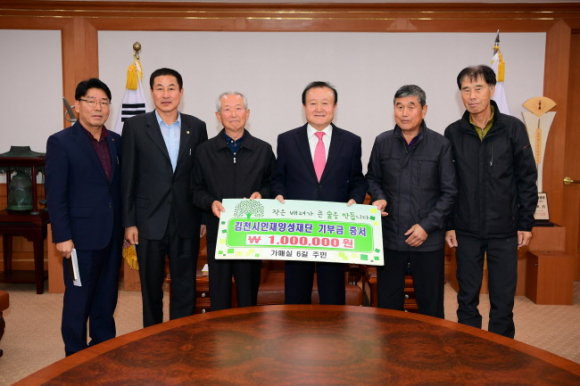 김천의 교육발전과 글로벌 인재육성을 위해 대곡동 가매실 6길 주민들이 김천시인재양성재단(이사장 박보생)에 장학기금 일백만원을 기탁했다.