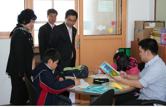 영해초등학교(교장 김도걸)에 지난 4월 13일(화) 오후 3시경 경상북도교육청 김화진 부교육감과 영덕교육청 김윤순 교육장이 방문하였다. 영해초등학교는 2009학년도 농산어촌 연중 돌봄학교 전국 최우수 학교로서 부교육감은 학생들의 활동 모습을 직접 살펴보고 사업 현황을 보고받았다.