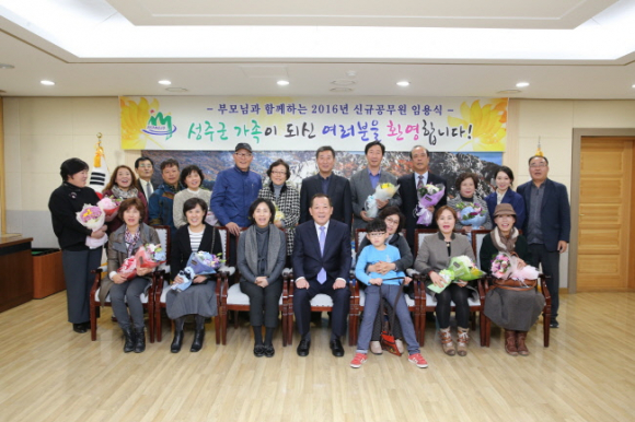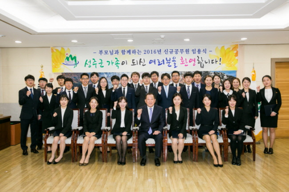 성주군은 11월 4일 군청 소회의실에서 신규공무원 29명에 대한 임용장 수여식에 부모님을 초청하여 가족과 함께 임용의 기쁨을 나누는 이색적인 행사를 실시했다.