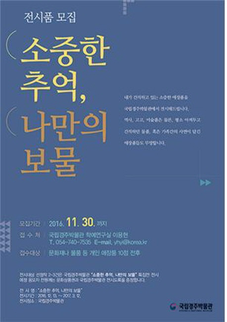국립경주박물관 소규모 특집전 “소중한 추억, 나만의 보물” 전시품 모집