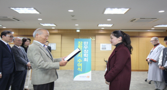 동국대학교 경주캠퍼스에서 지난 8일 만우장학회(이사장 조일환) 장학금 수여식이 열렸다.