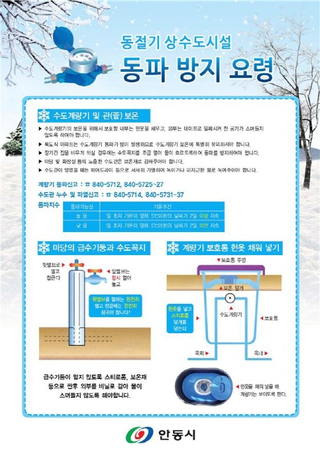 안동시 동절기 상수도시설물 관리요령』홍보물 제작 배부