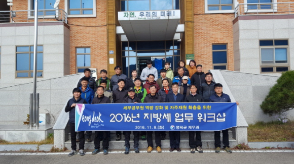 영덕군은 민선 6기 자주재원 확충을 위하여 지난 11월 8일 청송 주왕산 국립공원 소회의실에서 군·읍·면 세무 공무원이 30여명이 참석한 가운데 직무역량 강화를 위한 ‘2016년도 지방세 업무 워크숍’을 실시했다.