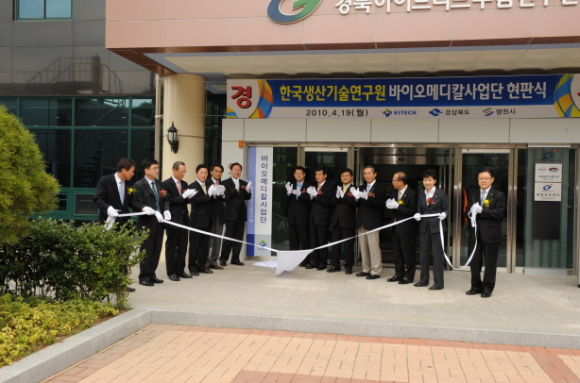 생기원은 19일 경북하이브리드부품연구원에서 정희수 국회의원, 나경환 한국생산기술연구원장, 김영석 영천시장, 지역 상공인 등 주요 인사들이 참석한 가운데 ‘바이오메디칼사업단’ 현판식을 가졌다.