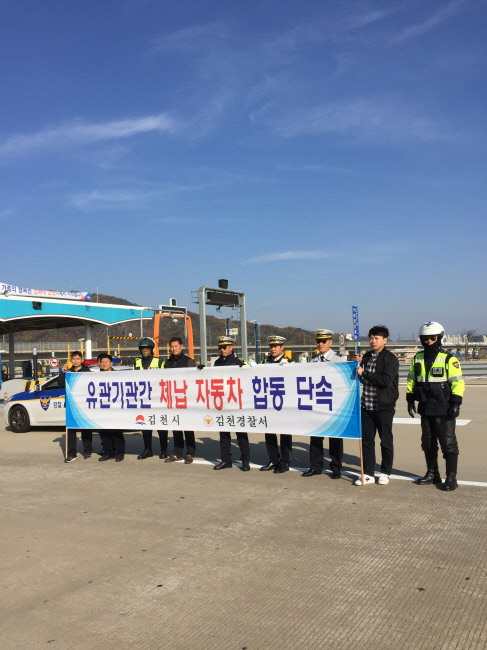 김천시(시장 박보생)는 전국 시군구와 합동으로 실시하는 ‘2016년 하반기 전국 번호판영치의 날’을 맞아 자동차 관련 지방세 및 세외수입 과태료 등 각종 체납액 징수 및 근절을 위하여 김천경찰서와 함께 2016년 11월 9일 체납 자동차 합동단속을 실시했다.