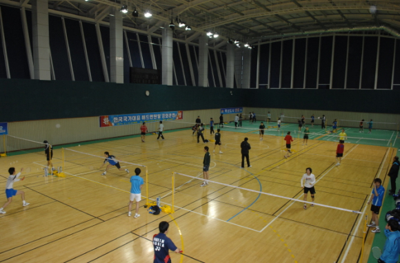 배드민턴 국가대표팀 59명이 지난 11일부터 25일까지 강화훈련을 위해 김천종합스포츠타운을 찾았다. 김중수 감독과 성한국 코치가 이끄는 이번 강화훈련에는 지난 베이징올림픽 혼합복식 금메달리스트인 이용대, 이효정 선수 등 베이징 올림픽 셔틀콕 영웅들이 총출동했다.