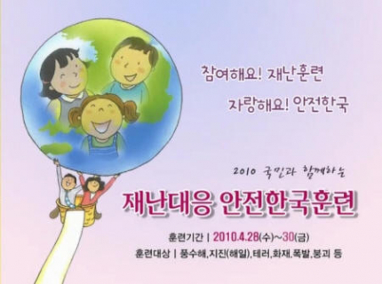 소방방재청에 따르면 4월 28일부터 30일까지 실시하는 2010 재난대응 안전한국훈련의 둘째 날인 4월 29일 오전 10시에 대전광역시 인근지역을 진앙지로 리히터 규모 6.5의 강진발생과 동시에, 전국에 재난경보가 발령되면 각급 학교는 수업을 중단하고 신속히 교실에서 나와 운동장이나 인근 공터로 긴급 대피하게 된다.