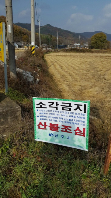 또한 11월 21일~ 12월 2일까지 마을별 “공동소각의 날”로 지정하여 산림주변의 논·밭두렁이나 영농부산물 소각으로 인한 산불을 미연에 방지하기 위해 의용소방대, 산불감시원, 면 직원 등이 참여한 가운데 마을이장을 중심으로 농업폐기물 및 인화물질 등을 모아 안전하게 소각할 예정이다.