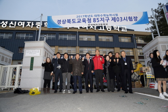 상주시(시장 이정백)에서는 17일, 2017학년도 대학수학능력시험을 치르는 학생들을 격려하기 위해 이른 아침부터 관내 3개 시험장을 방문했다.