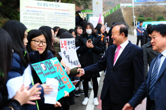 박보생 김천시장은 올해도 빠짐없이 관내 고등학교 각 시험고사장을 방문하여 그 동안 힘든 시간을 보냈을 수험생들을 격려하며 “긴장하지 말고 지난 3년간 쌓아온 내공을 마음껏 발휘하여 원하는 대학에 꼭 합격할 수 있길 바란다.” 고 말했다.