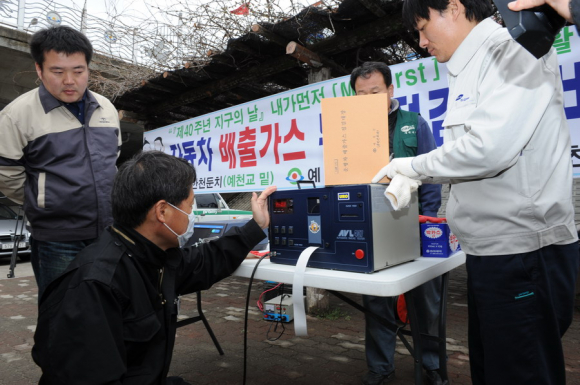예천군은 22일 제40주년 지구의 날을 맞이하여 자동차 배출가스 무상점검과 전국 동시 조명 끄기 행사를 실시했다.