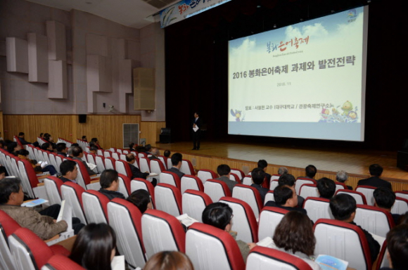 봉화군(군수 박노욱)은 11월 23일(수) 청소년센터에서 2년 연속 문화체육관광부 우수축제로 선정되었고 올여름 75만 4천여 명의 방문객이 다녀간 봉화은어축제가 최우수축제로 도약하기 위한 심포지엄을 개최했다.