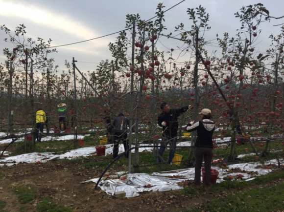 이날 봉사활동은 제법 쌀쌀한 날씨에도 불구하고 사과 수확기에 일손부족으로 어려움을 겪고 있는 농가에 도움이 되고자 직원들이 자발적으로 참여했으며 3,000여평 과수원의 사과 수확에 구슬땀을 흘렸다.