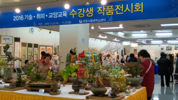 경주시평생학습센터(소장 정숙자)는 23일부터 25일까지 3일간 서라벌문화회관 전시실에서 ‘2016년 기술ㆍ취미ㆍ교양 교육 수강생 작품전시회’가 열린다고 밝혔다.