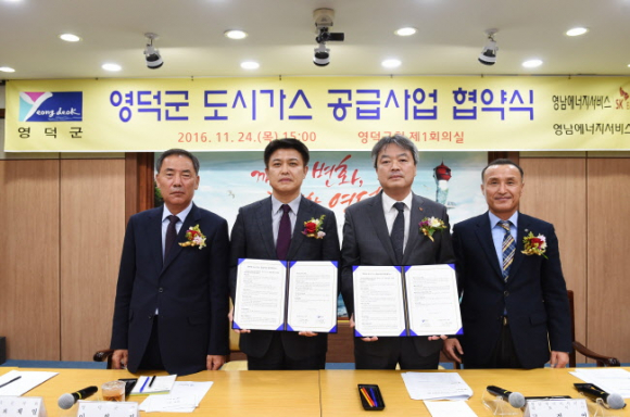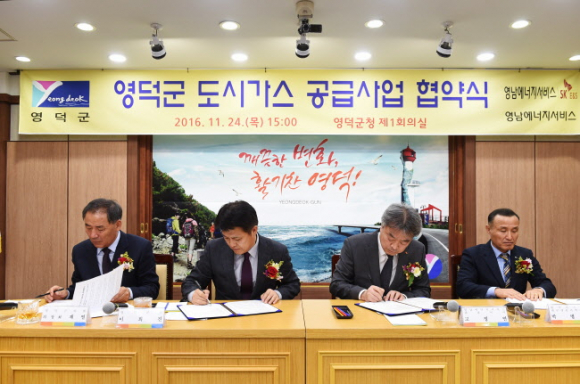 영덕군(군수 이희진)과 영남에너지서비스(대표이사 고정연)는 지난 24일(목) 영덕군청 제1회의실에서 최재열 영덕군의회의장을 비롯한 군의원, 한국가스공사 대구경북지역본부 박병선 본부장 등 20여명을 초청해 “영덕군 도시가스 공급사업 업무협약”을 체결했다.