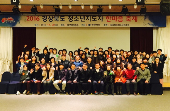 경상북도는 29일 10시 경주 블루원리조트에서 청소년지도사, 청소년상담사, 담당공무원 등 200여명이 참석한 가운데 ‘2016 경상북도청소년지도자 한마음축제’를 열었다.
