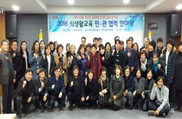 경상북도는 29일 경북도청 화랑실에서 식생활교육 유관기관, 전문가 등 50여명이 참석한 가운데‘바른 식생활, 건강한 식문화로 도민의 삶의 질 향상’이라는 주제로‘2016년 식생활교육 민․관 협력 워크숍’을 열었다.