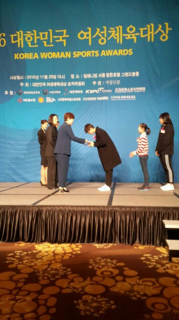 상주시 이안면 출신 2016 여성체육대상 꿈나무상 수상