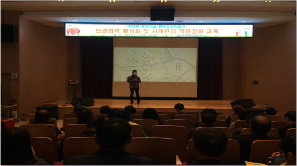 김천시(시장 박보생)는 김천시와 읍‧면‧동의 지역사회보장협의체 위원, 희망찾기 자문단, 읍‧면‧동 복지담당공무원 등을 대상으로 지난 11월 29일(화) 김천녹색미래과학관에서 「민관협력 활성화 및 사례관리 역량강화」교육을 실시했다.
