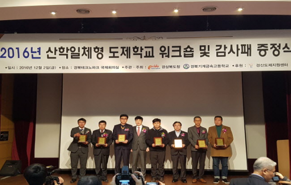 도제학생 5명이상 교육훈련한 7개 기업에 도지사 감사패 수여 경북기게금속고등 도제학교-참여기업 혐력 워크숍 가져