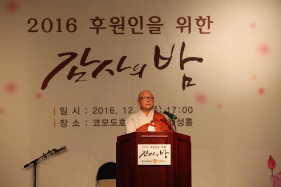 동국대학교 경주캠퍼스는 지난 1일 오후 5시 경주 코모도호텔 반월성홀에서 ‘2016 동국대 경주캠퍼스 후원인을 위한 감사의 밤’을 개최했다.