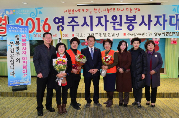 영주시(시장 장욱현)와 영주시종합자원봉사센터(센터장 권영순)는 지난 2일(금) 그랜드컨벤션웨딩에서 자원봉사자 및 시민 500여명이 참석한 가운데 ⌜자원봉사로 커지는 행복, 나눔으로 하나 되는 영주⌟라는 주제로 2016 영주시자원봉사자대회를 개최했다.