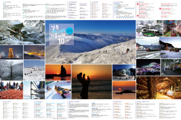 또한 겨울지도 뒷면(내용면)에는 겨울의 정취를 느낄 수 있는 눈꽃트레킹 코스, 겨울축제, 겨울 빵 이야기, 해맞이 명소 등 10가지 여행테마로 경북을 소개, 경북을 찾는 관광객들이 다양한 선택을 할 수 있도록 가이드 역할을 하고 있다.