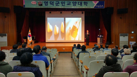영덕군(군수 이희진)은 12월 2일(금) 오후 2시 주민과 공무원 등 300여명이 참여한 가운데 영덕군민회관에서 “역발상과 문화콘텐츠산업(스토리와 디자인이 세상을 바꾼다)”라는 주제로 12월 영덕군민교양대학을 성황리에 개최했다.