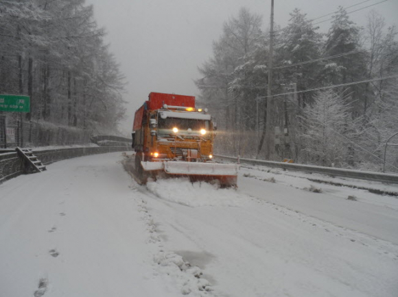 아울러, 폭설시 교통두절이 예상되는 취약구간 55개소에는‘제설전진기지’로 지정하고 장비․인력․자재를 현장에 배치했으며, 상습 결빙구간 15개소에는 염수분사장치를 설치․운영해 신속하게 염수용액을 살포하는 등 교통소통에 지장이 없도록 대책을 마련했다.