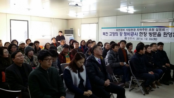 이번 설명회는 2017년 준공을 목표로 사업에 박차를 가하고 있는 2개 현장에 대해 지역 주민들에게 사업내용, 추진현황 등을 설명하고 미처 생각지 못한 사소한 의견 등 다양한 고견을 수렴하여 사업반영 등 시민과 함께 소통․공감 하천을 조성하기 위해 마련됐다.