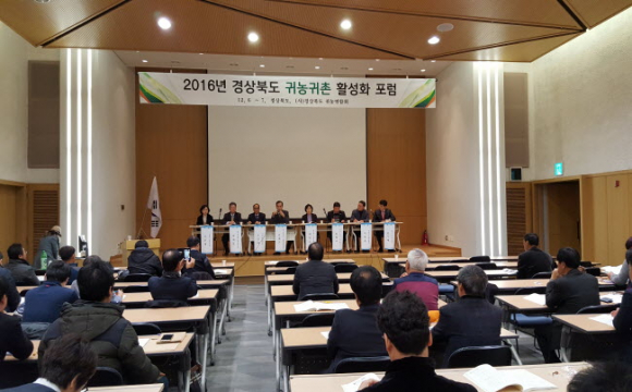 경상북도는 6일부터 7일까지 2일간 경주 교원드림센터에서 귀농․귀촌인, 유관기관 관계자, 시군 담당공무원 등 100여명이 참석한 가운데, 농촌에서 새로운 삶을 꿈꾸는 도시민들의 증가 추세에 부응하고 침체된 농촌에 활력을 불어 넣기 위한‘귀농귀촌 활성화 포럼’을 열었다.